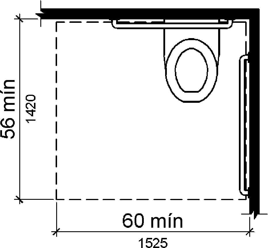En el lado del asiento opuesto al agua, deberá haber un espacio libre en la cubierta paralelo al asiento. El espacio deberá tener un ancho mínimo de 36 pulgadas (915 mm) y se extenderá hacia delante 48 pulgadas (1220 mm) como mínimo desde una línea situada 12 pulgadas (305 mm) detrás del borde trasero del asiento. El espacio libre de la cubierta deberá tener una pendiente no superior a 1:48.
